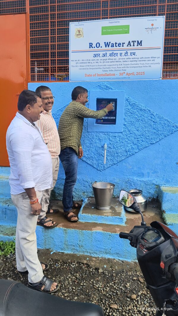 After villagers raised concerns, Deepastambha Charitable Trust (DCT), with financial support from the R. M. Tulpule Charitable Trust, installed a Reverse Osmosis (RO) Water ATM. This marks a major step toward ensuring safe drinking water and reflects a strong commitment to the health and future of Velhe-Budruk.
